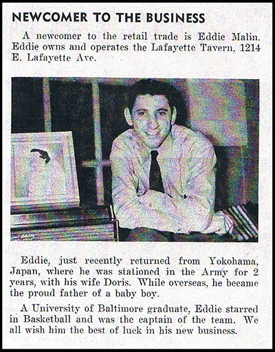 Ed first joined the industry in 1958 when he purchased and began operating the Lafayette Tavern in Baltimore (as announced in the July 1958 Maryland